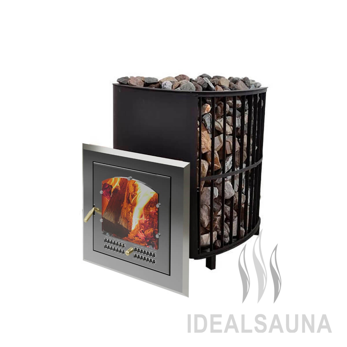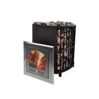 Облицовка печи выполнена в виде решетчатой стальной конструкции, которая вмещает в себя до 400 кг камней и эффективно аккумулирует тепло, позволяя создавать максимально комфортный температурно-влажностный режим в бане.