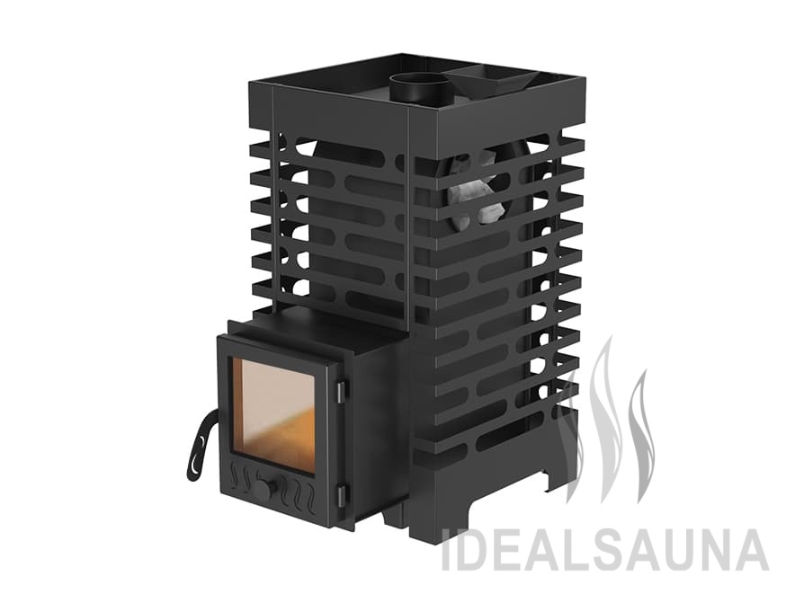 Большая масса камней, закладываемых в сетку-кожух печи, обеспечивает стабильность температуры в парилке и является мощным парогенератором.