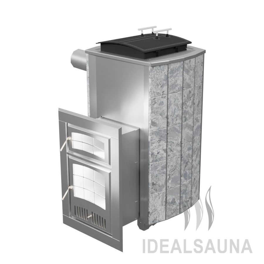 Закрытая каменка разогревает 120 кг камней для парообразования до высокой температуры и даёт возможность получить великолепный мягкий лёгкий пар.