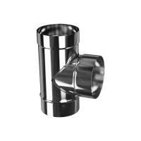 Предназначен для соединения горизонтального и вертикального участков дымохода в одноконтурном исполнении или воздуховода. Используется в схемах сборки дымоходов при необходимости снятия и переноса весовой нагрузки от дымохода с теплогенерирующего аппарата, либо на дополнительную фундаментную опору, либо на систему кронштейнового крепления к стене, при сборке сложных дымоходов от нескольких теплогенерирующихся аппаратов, для сборки сэндвичных элементов дымохода.