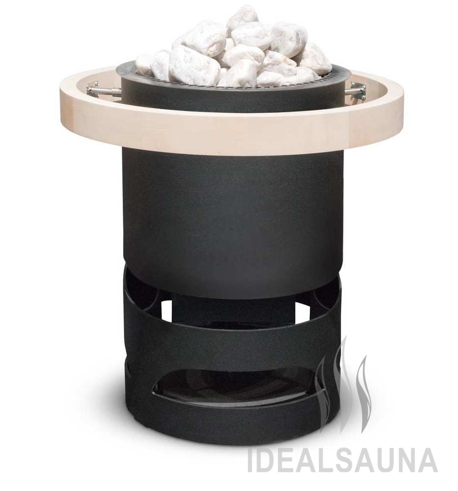 Альтернативная печь для бани, основанная на конструкции Zeus S. Единственное отличие – полностью круглый верхний край печи, без декоративного элемента. Особенно подходит для установке в центре сауны или для использования с оборудованием Травяная баня