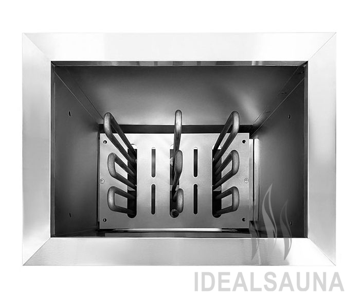 Нагревательным элементом в печке является ТЭН из высококачественной нержавеющей стали. Его диаметр составляет 10 мм. Подобные нагреватели не боятся попадания влаги. Это позволяет устанавливать электрическую каменку как в финские сауны с «сухим» паром, так и в русские традиционные бани с повышенной влажностью, потому что на камни, находящиеся в электропечи можно спокойно лить воду для повышения влажности пара.