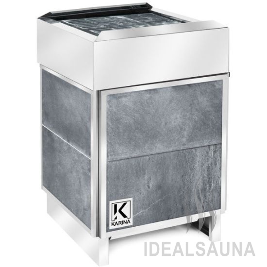 Электрокаменка подключается к сети с напряжением 220 В. Печь KARINA Elite не укомплектовывается выносным пультом, его нужно будет приобрести дополнительно.