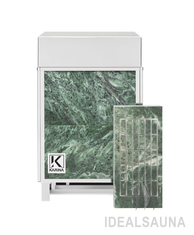 Электрическая печь KARINA Elite 14 Талькохлорит благодаря оригинальному дизайну и приятному внешнему виду, прекрасно будет смотреться в парильном помещении. Талькохлорит внешне напоминает мрамор, поэтому данная модель каменки будет смотреться изыскано в любом интерьере. Мощность данной электрокаменки составляет 14 кВт, что позволяет ей прогреть помещение объемом до 20 куб. м.
