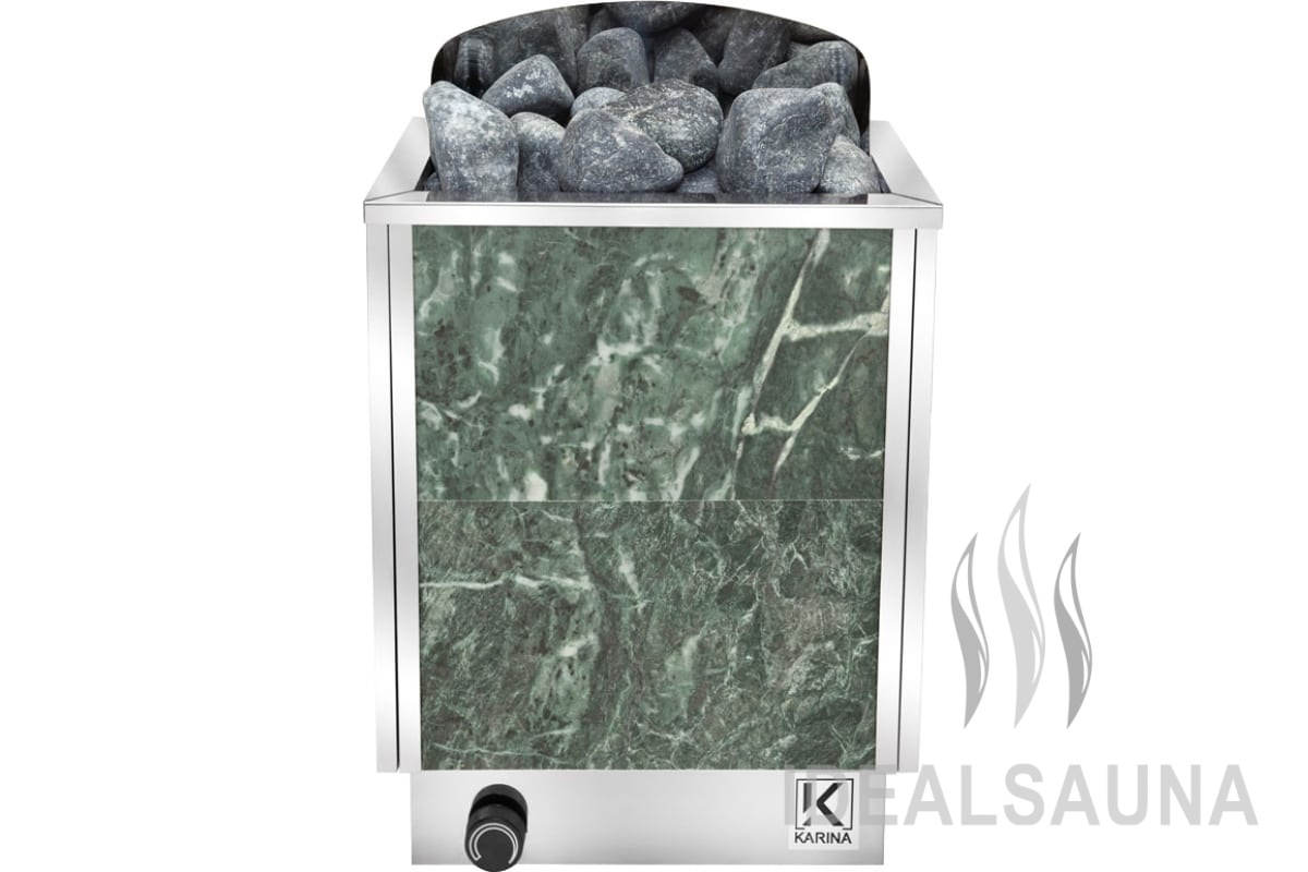 Электрическая печь KARINA Trend 9 Талькохлорит - это электрокаменка, облицованная натуральным камнем со всех сторон, и обладающая мощностью оптимальной для домашних и небольших бань и саун объемом до 14 м3.