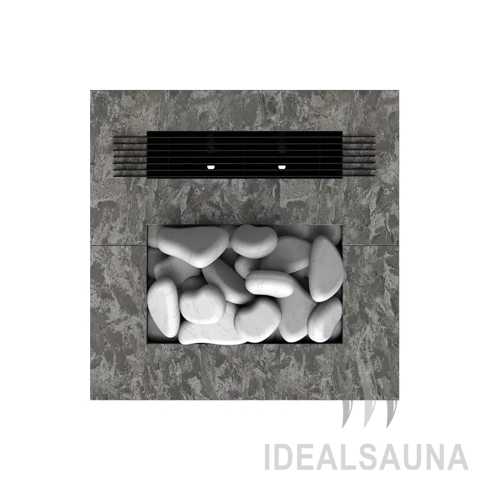 В печи 2 источника тепла: конвектор для нагрева воздуха и закрытая каменка с камнями для получения пара. Температура в закрытой каменке 550 градусов. Вы поддаёте воду, а температура всегда стабильна, всегда готовый пар в одном режиме. Управление печью с помощью пульта по каналу Bluetooth и мобильного приложения.