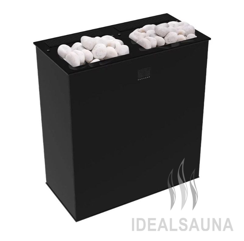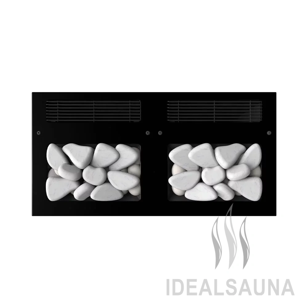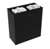 В печи 2 источника тепла: конвектор для нагрева воздуха и закрытая каменка с камнями для получения пара. Температура в закрытой каменке 550 градусов. Вы поддаёте воду, а температура всегда стабильна, всегда готовый пар в одном режиме. Управление печью с помощью пульта по каналу Bluetooth и мобильного приложения.