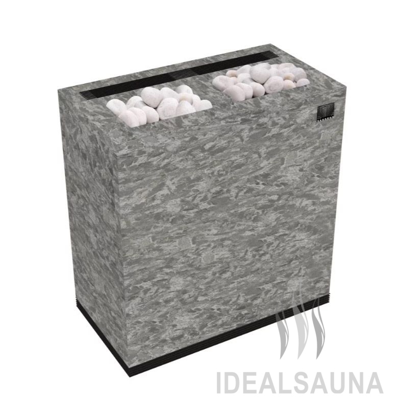 В печи 2 источника тепла: конвектор для нагрева воздуха и закрытая каменка с камнями для получения пара. Температура в закрытой каменке 550 градусов. Вы поддаёте воду, а температура всегда стабильна, всегда готовый пар в одном режиме. Управление печью с помощью пульта по каналу Bluetooth и мобильного приложения.