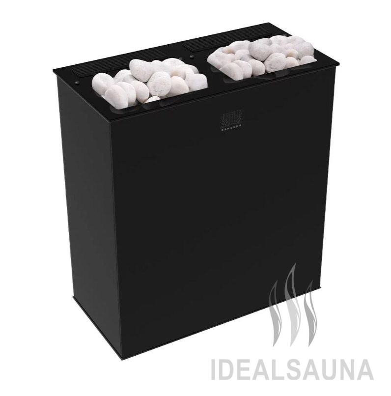 В печи 2 источника тепла: конвектор для нагрева воздуха и закрытая каменка с камнями для получения пара. Температура в закрытой каменке 550 градусов. Вы поддаёте воду, а температура всегда стабильна, всегда готовый пар в одном режиме. Управление печью с помощью пульта по каналу Bluetooth и мобильного приложения.