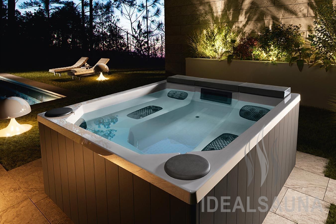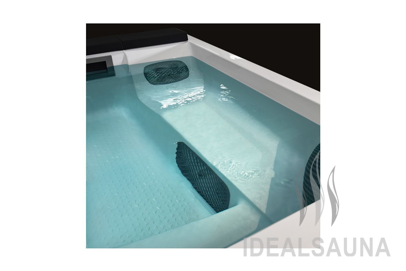 СПА Бассейн Quarz – хороший пример того, как интегрировать гидромассажные форсунки под защитную решетку, которая помимо декоративной функции, так же обеспечивает больший комфорт при отдыхе в бассейне. Мини бассейн Quarz оснащен системой Antifrost. Его можно устанавливать как в помещении (частных или коммерческих зон отдыха, ванных комнат, термальных комплексов) так и на уличных террасах загородных домов, панорамных открытых площадках.