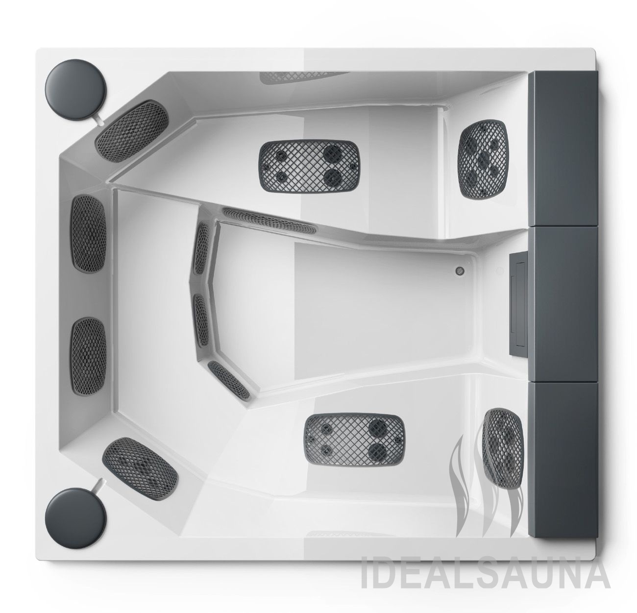 СПА Бассейн Quarz – хороший пример того, как интегрировать гидромассажные форсунки под защитную решетку, которая помимо декоративной функции, так же обеспечивает больший комфорт при отдыхе в бассейне. Мини бассейн Quarz оснащен системой Antifrost. Его можно устанавливать как в помещении (частных или коммерческих зон отдыха, ванных комнат, термальных комплексов) так и на уличных террасах загородных домов, панорамных открытых площадках.