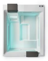 Компактный, прямоугольной бассейн впишется в СПА зону или пространство для отдыха. Такую ванну легко представить в здании с панорамными окнами, где можно сочетать приятное созерцание окружающего пространства с пользой для здоровья. Для удобства эксплуатации бассейн Shadow оснащен картриджным фильтром для воды. Гидромассажный форсунки расположены в углублениях, и совершенно не изменяют внешнюю дизайнерскую задумку. Эту систему запатентовали под названием Ghost System (с английского, дословно: призрачная, едва видимая) и с успехом применяют Gruppo Treesse для создания гидромассажных ванн. Мини бассейны Gruppo Treesse могут устанавливаться как на подиум, так и в уровень с полом.