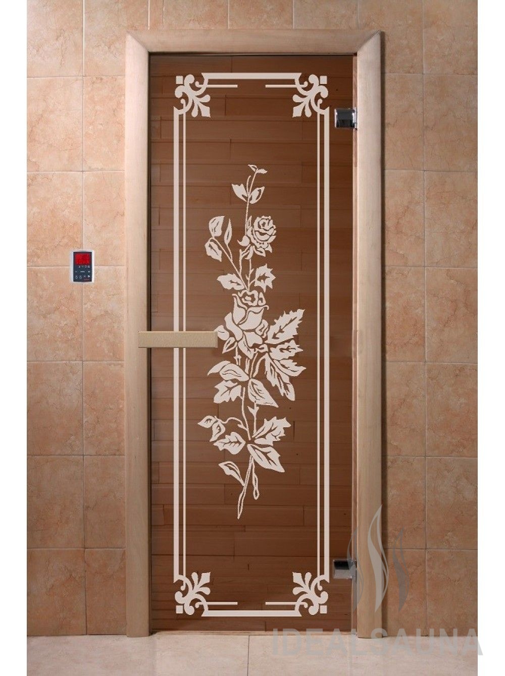 Дверь для бани и сауны Doorwood "Розы бронза" 1900*700, 6мм, 2 петли