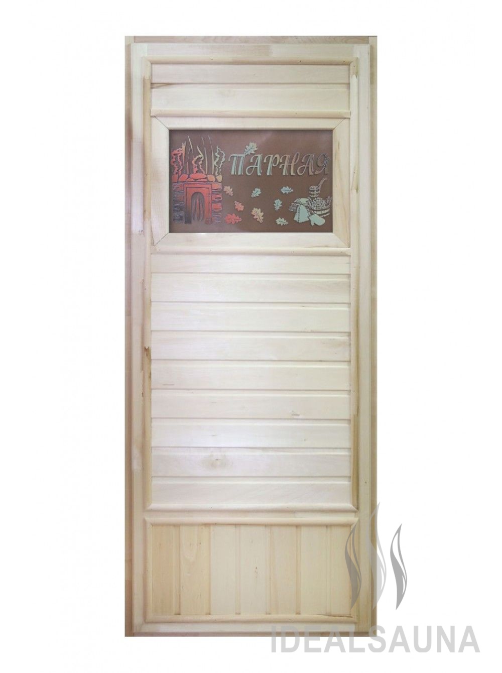Дверь для бани и сауны Doorwood "Вагонка эконом" со стеклом Банька