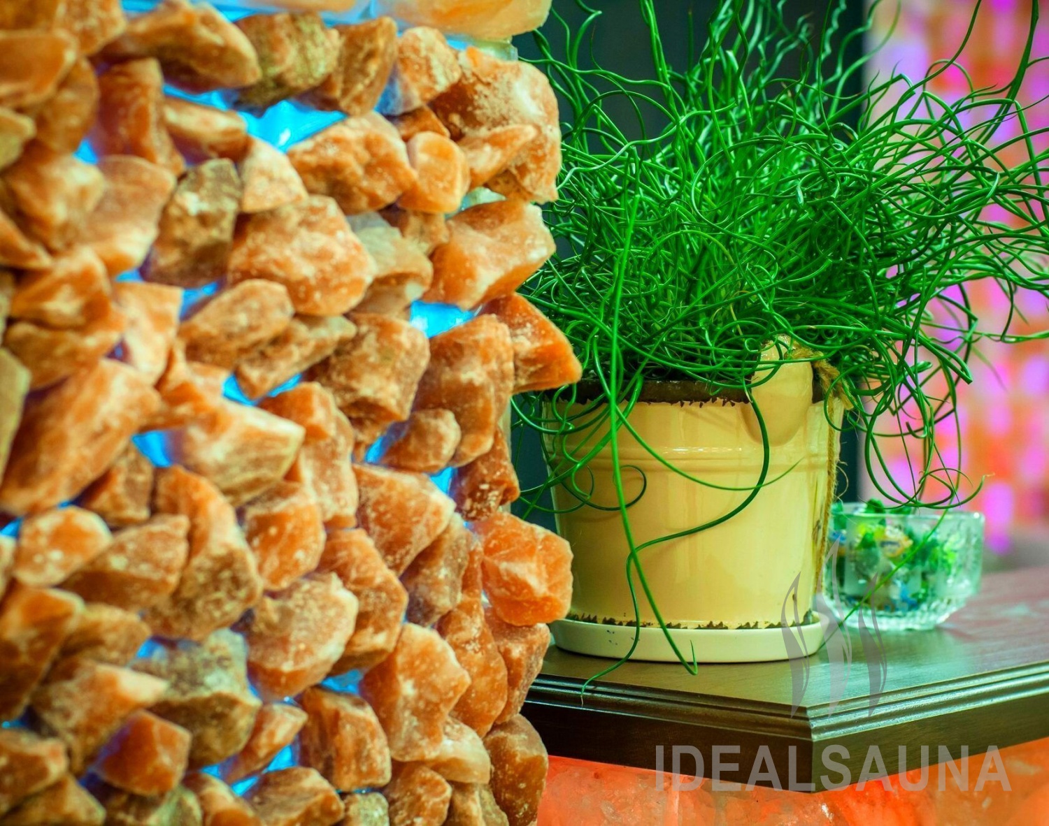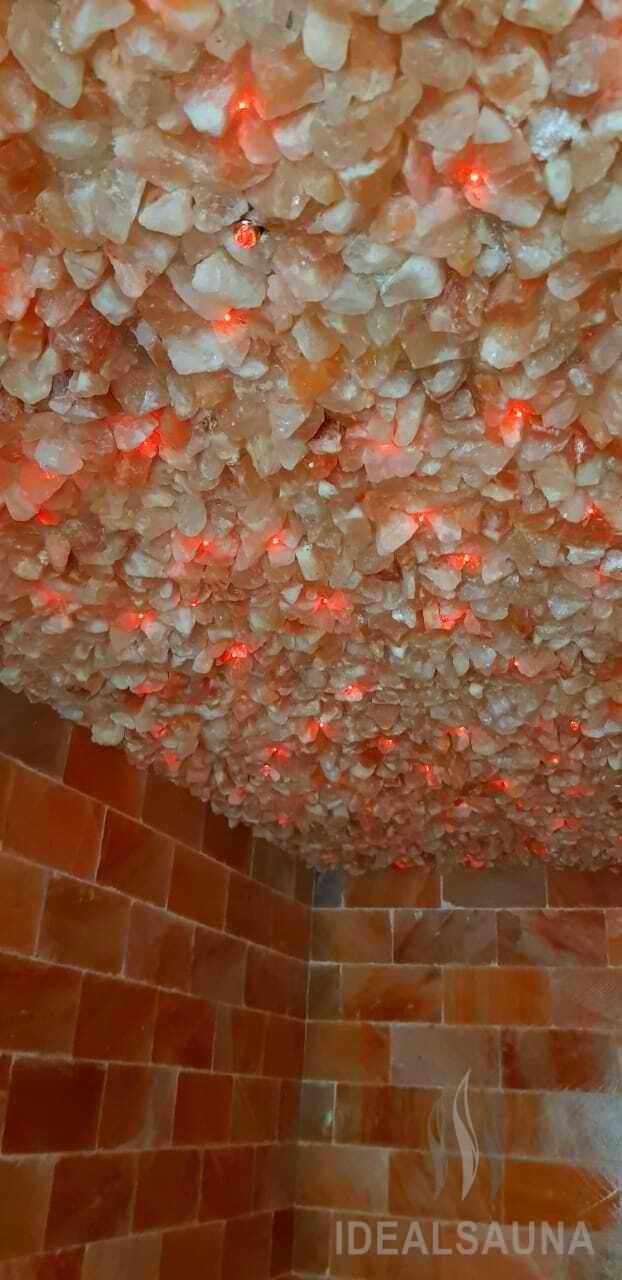 Применяется в декоре помещения, для отделки интерьера бань и саун, потолка, создание соляной комнаты или пещеры.